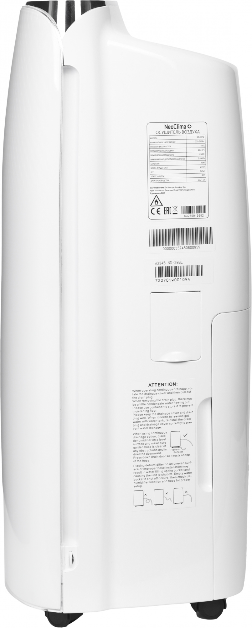 Осушитель воздуха NeoClima ND-20SL 385Вт бытовой белый