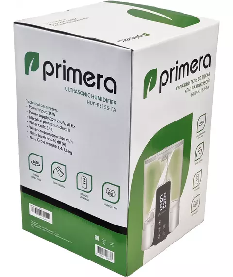 Увлажнитель воздуха Primera HUP-R3155-TA 25Вт (ультразвуковой) белый/черный