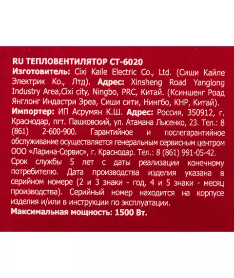 | Цвет тепловентилятора | серый/черный |