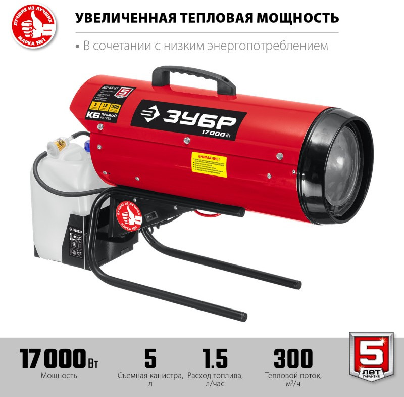 - Высокоэффективный дизельный теплогенератор прямого нагрева работающий на дизельном топливе для всех климатических условий. Оптимально подходит для сушки и прогрева на строительных площадках складских комплексов и проветриваемых помещений. Надежный поджиг и эффективное горение гарантируют безотказную подачу тепла в любых условиях эксплуатации. ЗУБР - тепло всегда и везде