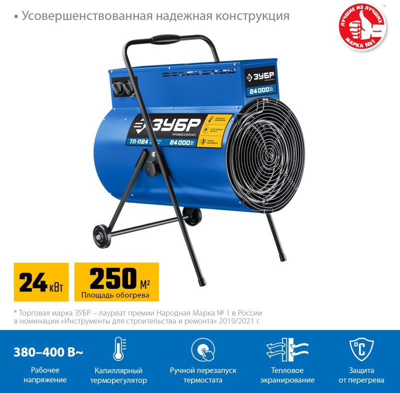 - Профессиональные электрические тепловые пушки с питанием от трехфазной электрической сети эффективны для быстрого и направленного обогрева складских и производственных помещений, ангаров и мастерских, благодаря большой площади нагревательных элементов и мощным двигателем вентилятора. Надёжная доработанная конструкци,обеспечивают защиту как пользователя, так и тепловой пушки в случае возникновения нештатных ситуаций. ЗУБР - тепло всегда и везде