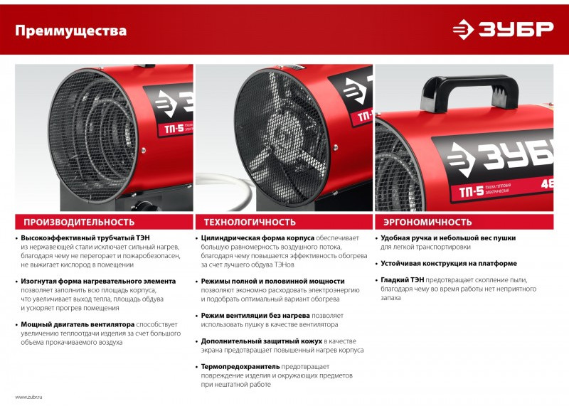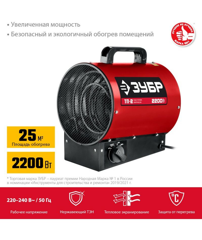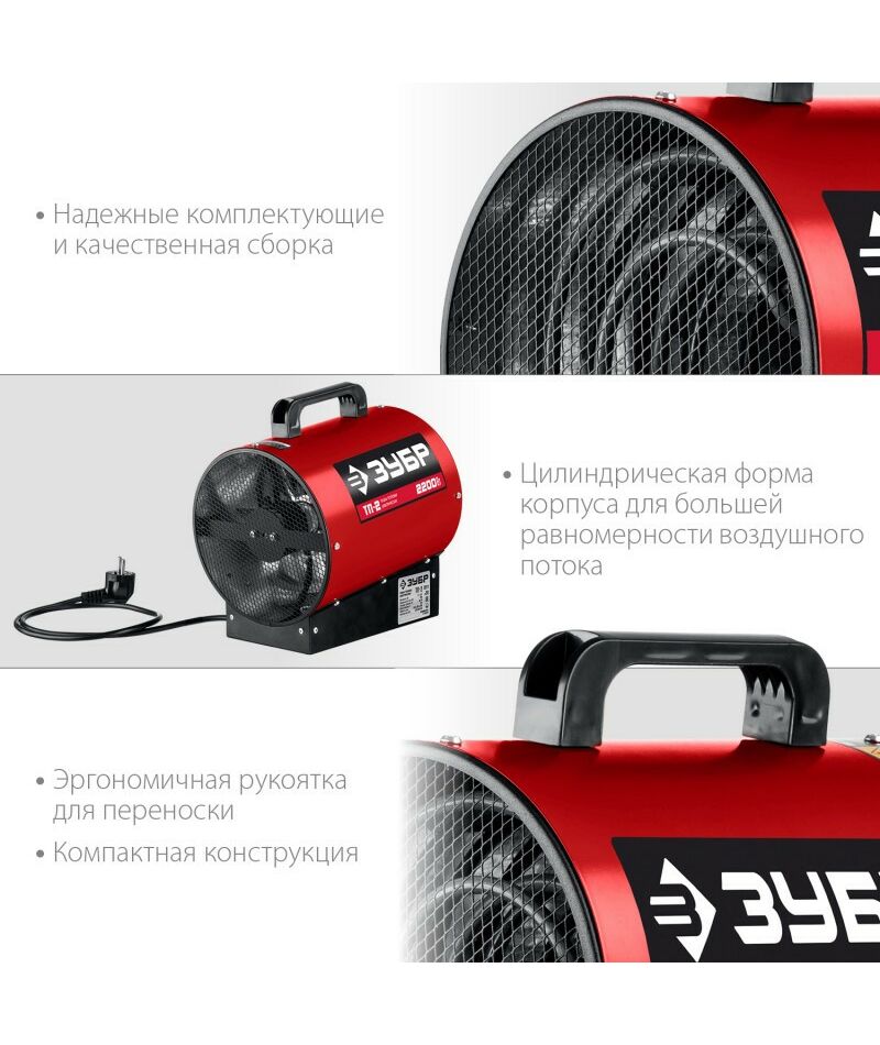- Компактный и легкий обогреватель в круглом корпусе для квартиры, загородного дома, мастерских гаражей и т.д. Большая площадь ТЭНов и эффективный обдув способствуют более быстрому нагреву помещения. Конструктивные меры безопасности (дополнительный защитный кожух, термопредохранитель, заземление корпуса) защищают Вас и изделие при нештатных ситуациях. ЗУБР - тепло и уют Вашего дома
