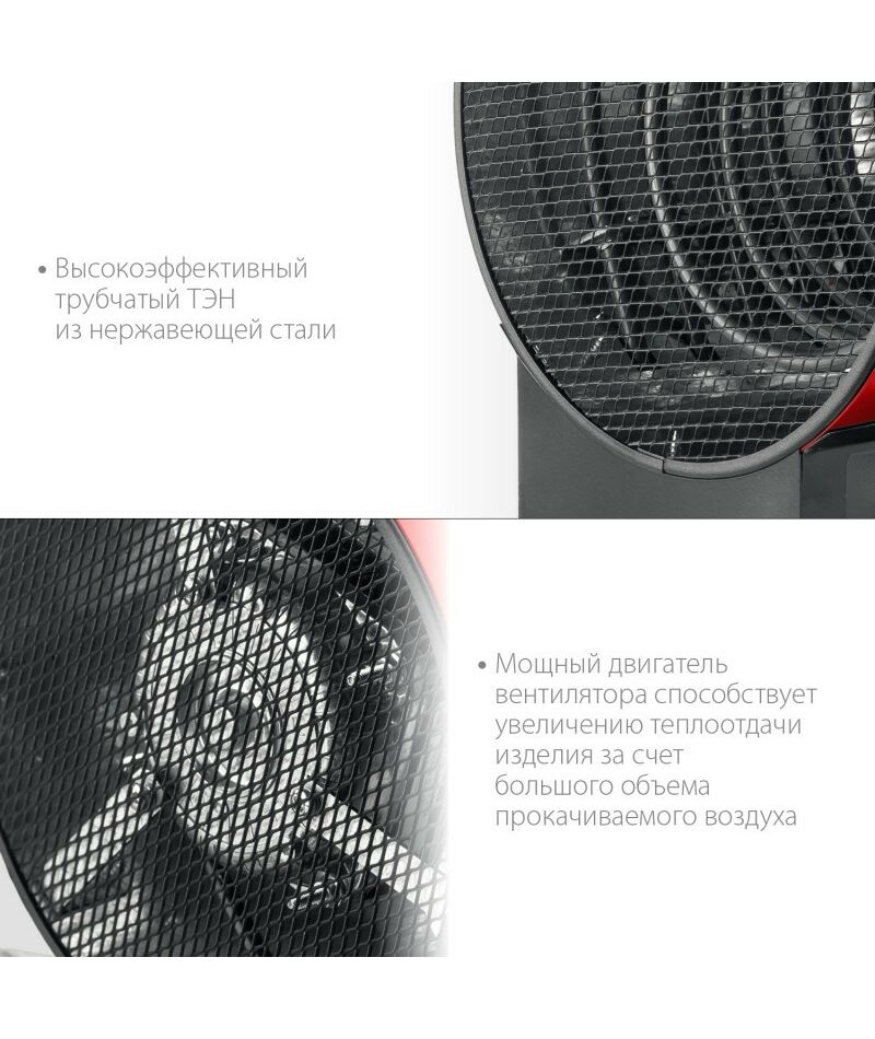 - Цилиндрическая форма корпуса для большей равномерности воздушного потока, благодаря чему повышается эффективность обогрева за счет лучшего обдува ТЭНов
