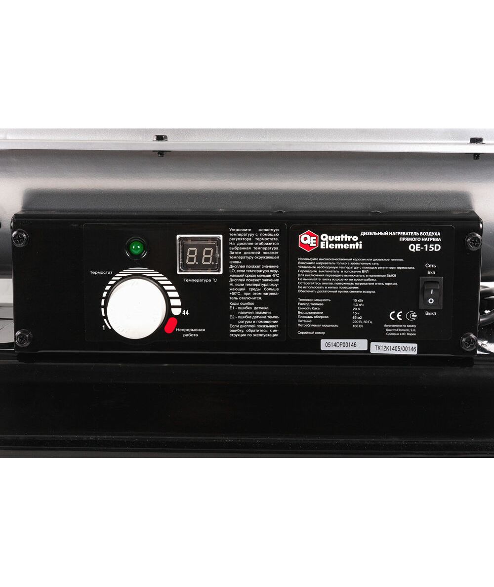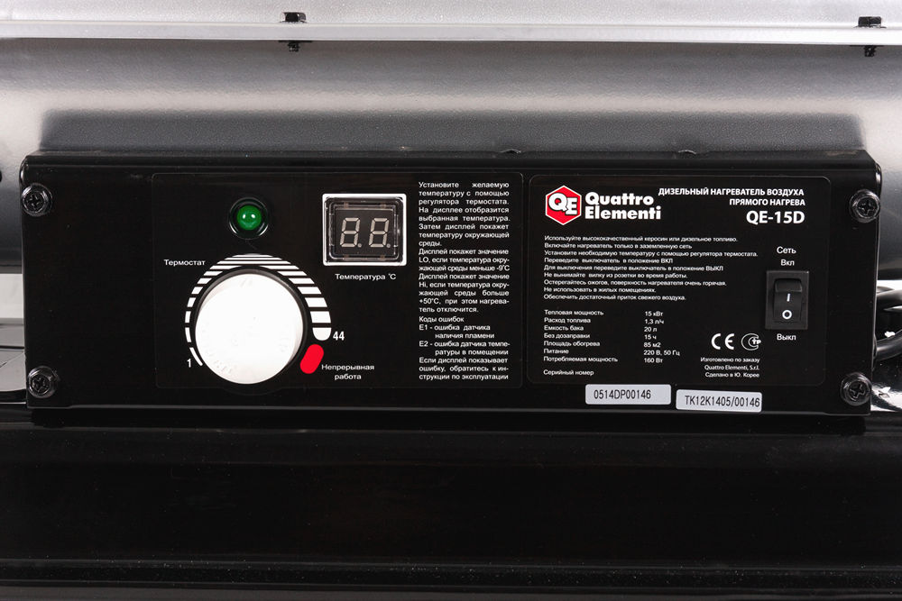 Нагреватель воздуха дизельный прямого нагрева Quattro Elementi QE-15D 15кВт, 205 м.куб/ч, бак 20л, 1,3кг/ч, 12.8кг [772-326]
