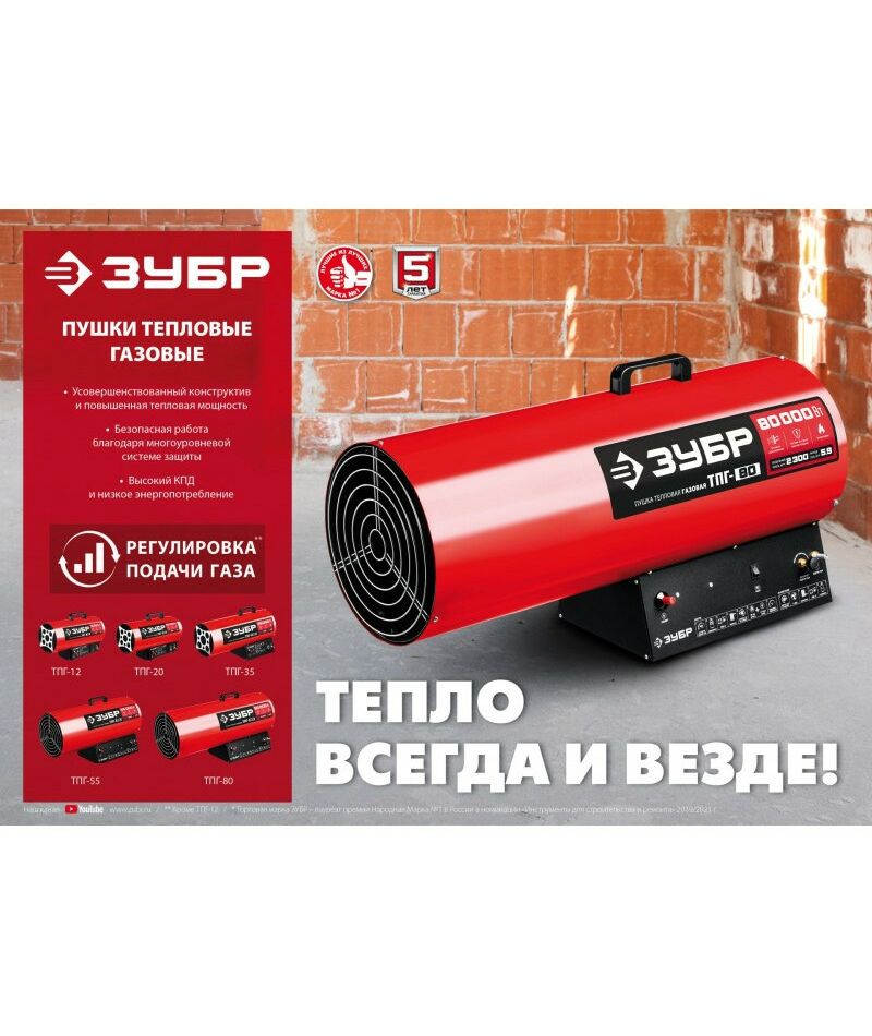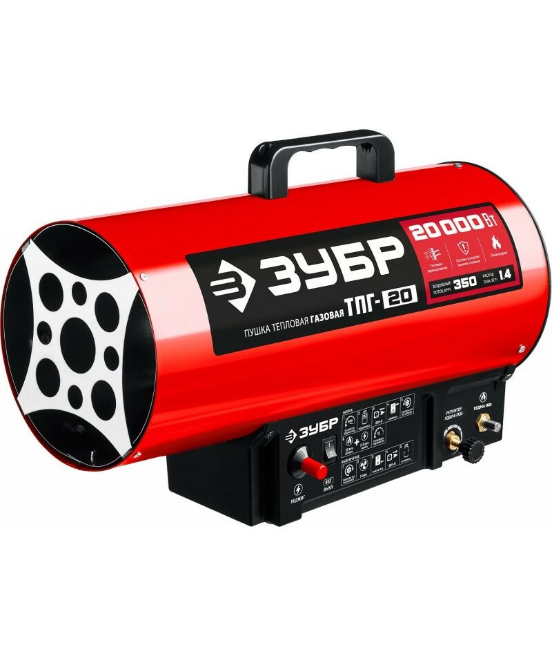 - Высокоэффективный газовый обогреватель, работающий на наиболее распространенном виде топлива. Оптимально подходит для использования на открытых и полузакрытых площадках для просушки и обогрева, размораживания траншей и аварийного прогрева помещений, а так же для монтажа натяжных потолков. Надежный поджиг дуги и эффективное горение гарантируют безотказную подачу тепла в любых условиях эксплуатации. ЗУБР - тепло всегда и везде