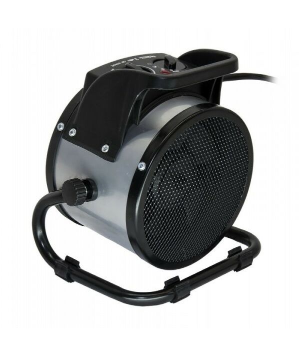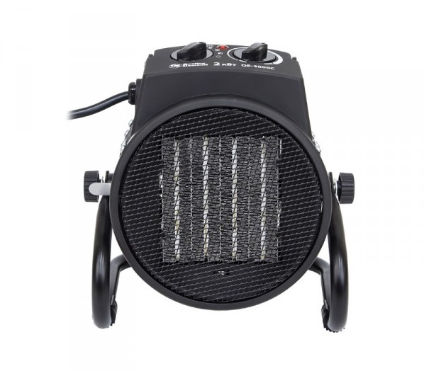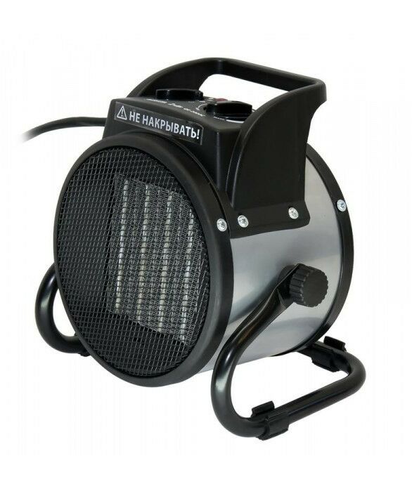 Нагреватель воздуха электрический мощностью 2 кВт, площадь обслуживания до 30 кв.м, керамический нагревательный элемент, система защиты от перегрева.