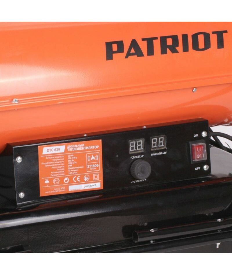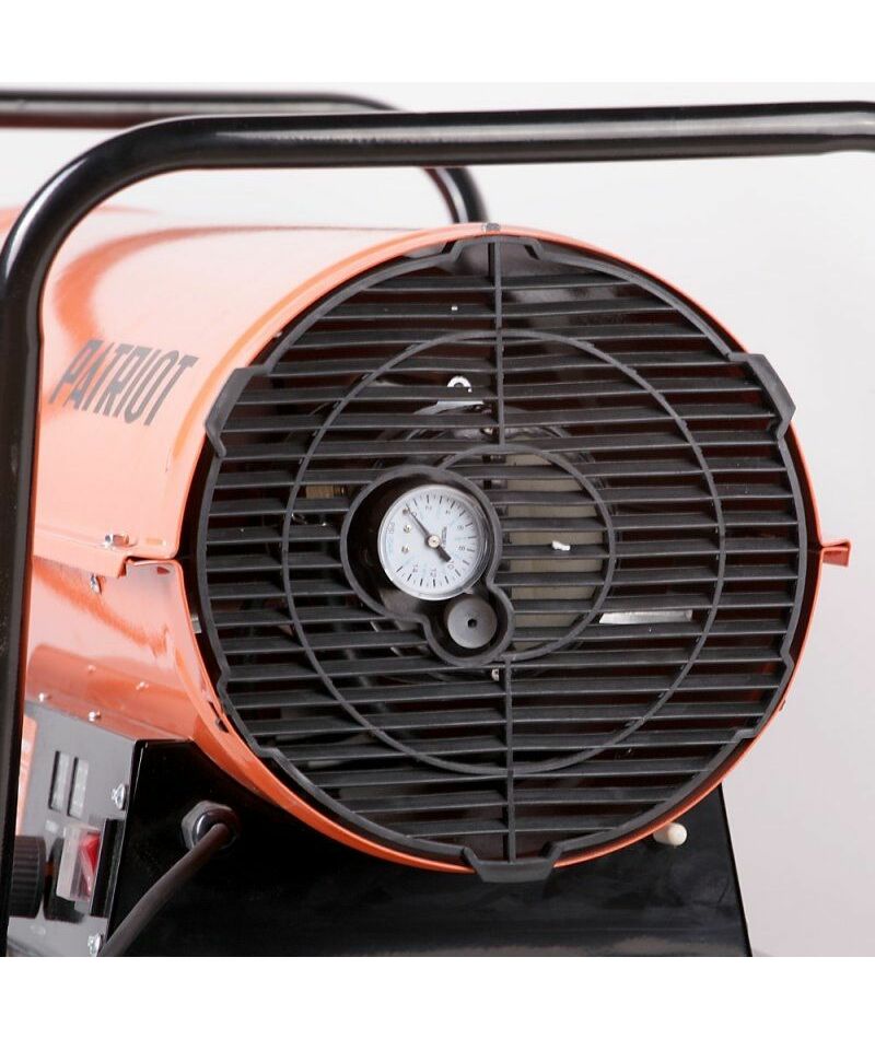 Дизельный теплогенератор прямого нагрева, применяется на различных этапах строительства: отделка и ремонт помещений, сушка штукатурки и шпаклевки в зимних условиях, сушка фасадов при облицовке их керамической плиткой, размораживание траншей, поддержания в помещениях постоянной температуры. Предназначен для использования на открытых площадках или в хорошо проветриваемых помещениях. В теплогенераторах Patriot реализованы различные передовые технологии - система максимального сжигания топлива, увеличивает КПД и уменьшает выброс в атмосферу отработанных газов. Индикация и регулировка температуры на выходе, система защиты от перегрева, электронный контроль пламени с фотоэлементом, автоматическое распознавание неисправностей. Термостат с цифровым индикатором (поддерживает заданную температуру).