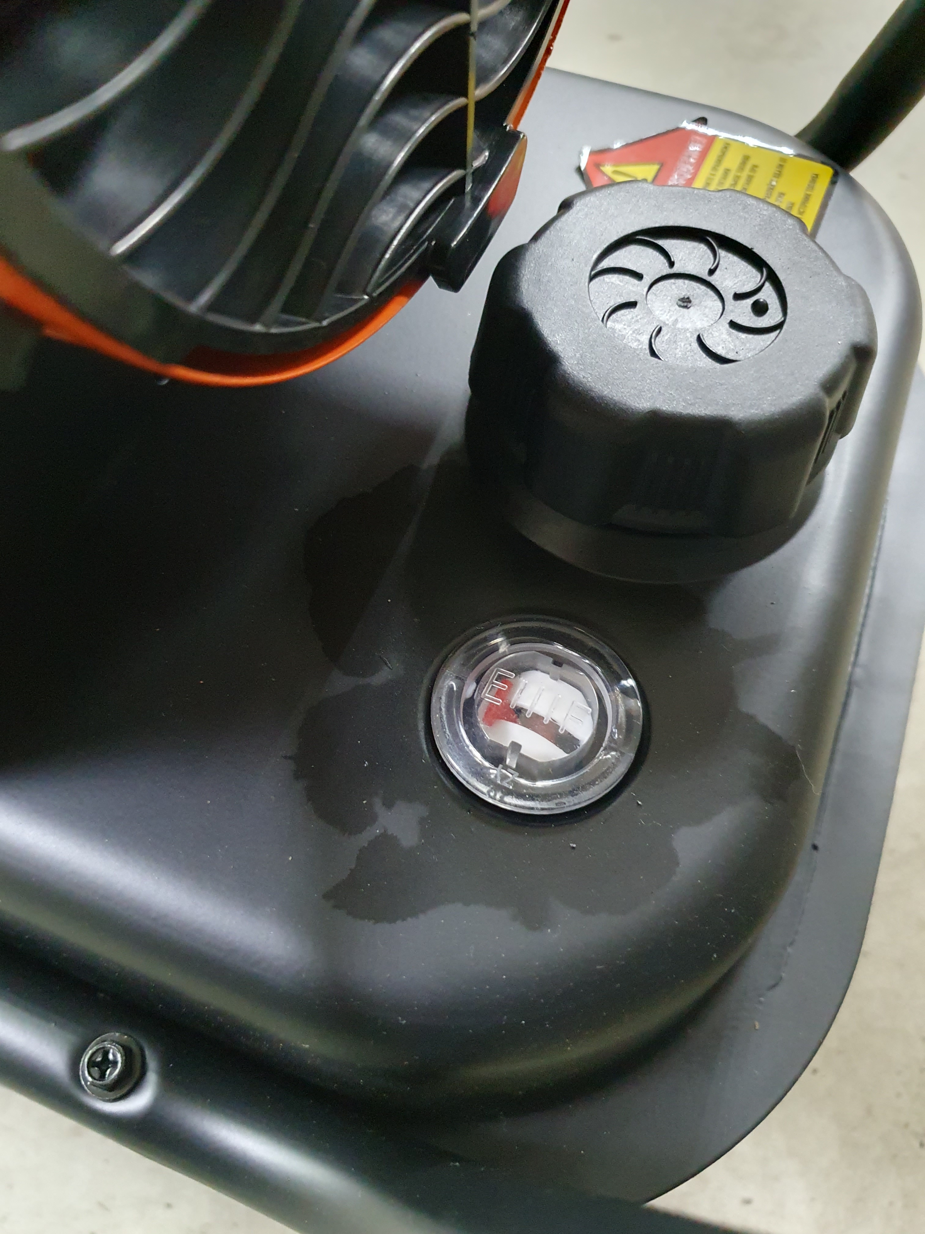 Уровень топлива; топливный фильтр; специальное крепление для намотки электрического кабеля; колесный комплект.