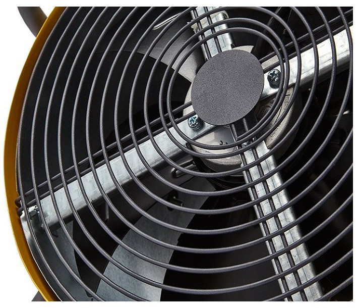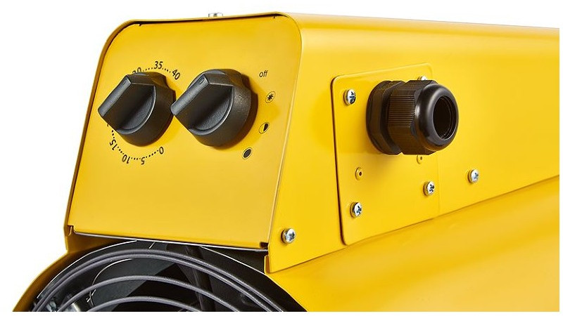 - В цилиндрическом корпусе пушки нагревательные элементы особой формы способствуют созданию более эффективного направленного воздушного потока. В пушке предусмотрено два режима мощности и режим вентиляции. Обогреватель питается от сети 400В и имеет кабельный ввод на корпусе, что обеспечивает простоту и надежность подключения