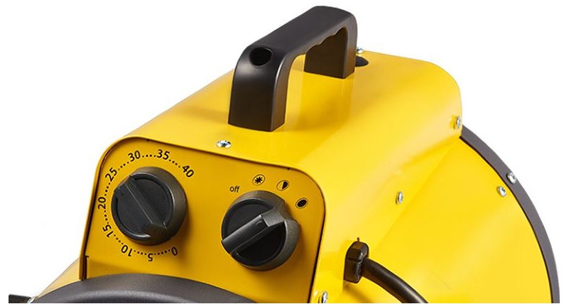 - В цилиндрическом корпусе пушки нагревательные элементы особой формы способствуют созданию более эффективного направленного воздушного потока. В пушке предусмотрено два режима мощности и режим вентиляции. Обогреватель питается от сети 400В и имеет трёхфазную вилку, что обеспечивает простоту и удобство подключения