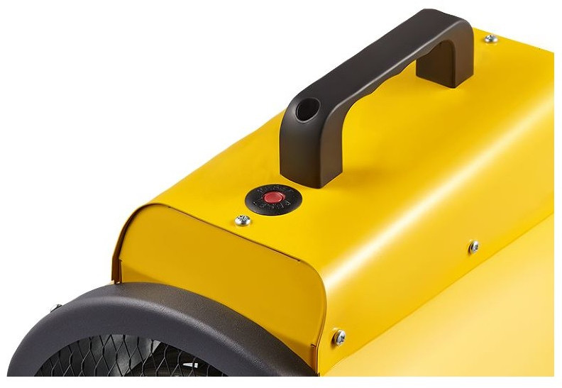 - Функция ручного перезапуска препятствует автоматическому запуску пушки после срабатывания защитного термостата. Пушка отключается и не включается повторно до устранения причины перегрева. Для снятия блокировки и дальнейшей эксплуатации пушки необходимо нажать на кнопку сверху корпуса