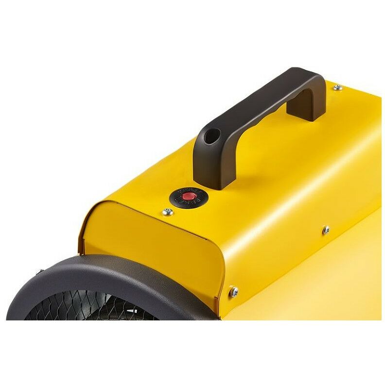 - Функция ручного перезапуска препятствует автоматическому запуску пушки после срабатывания защитного термостата. Пушка отключается и не включается повторно до устранения причины перегрева. Для снятия блокировки и дальнейшей эксплуатации пушки необходимо нажать на кнопку сверху корпуса