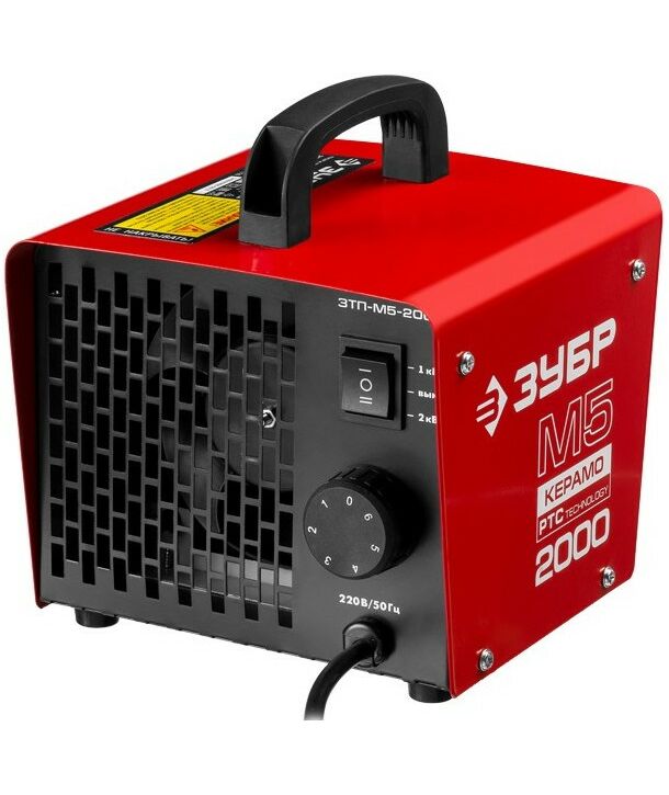 Пушка тепловая керамическая Зубр М5-Керамо ЗТП-М5-2000 электрическая, РТС керамический нагревательный элемент, регулировка темп., 2 режима работы, 220В