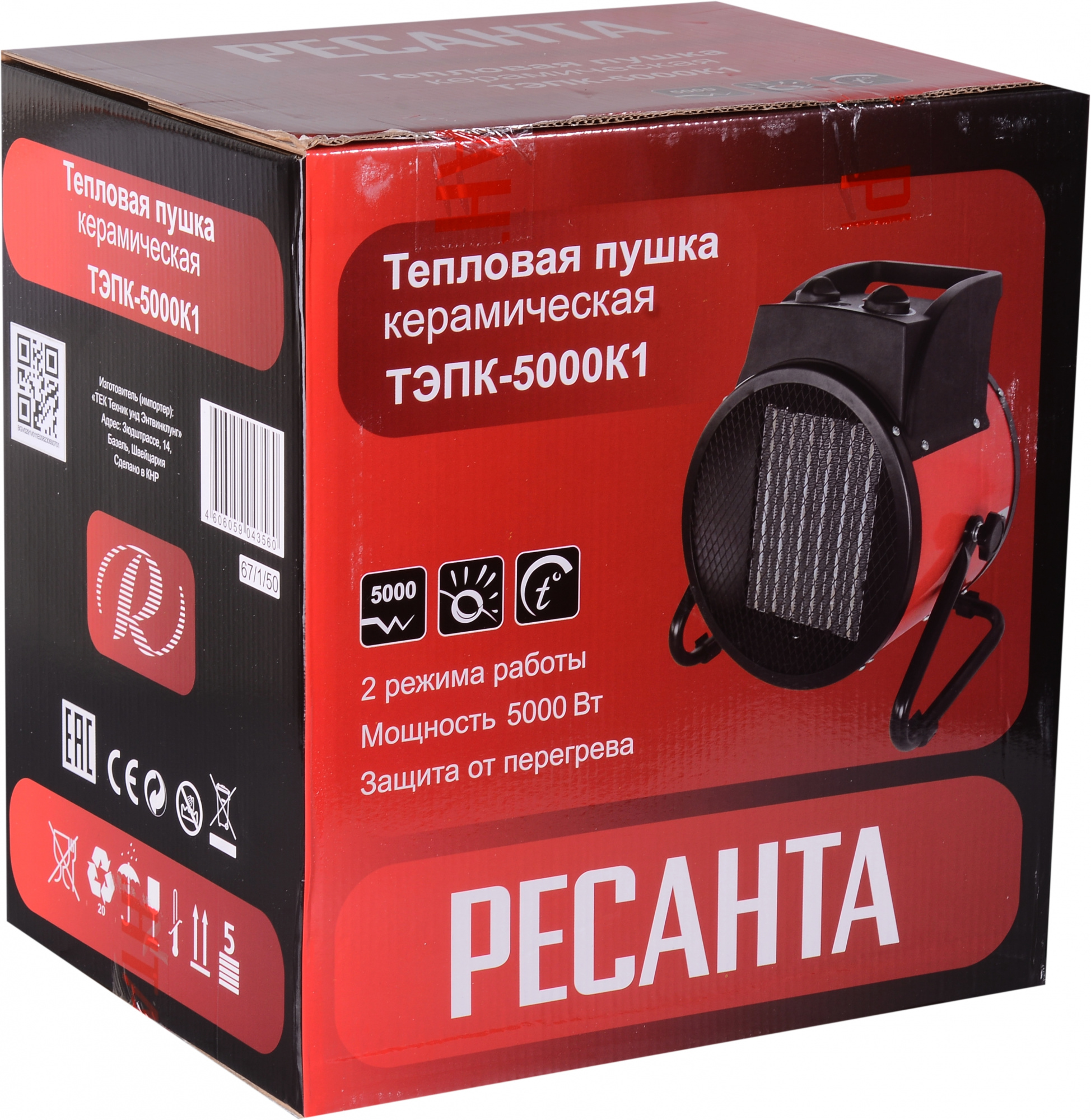 Тепловая пушка электрическая РЕСАНТА ТЭПК-5000К1 5000Вт красный/черный
