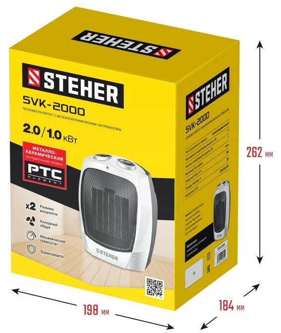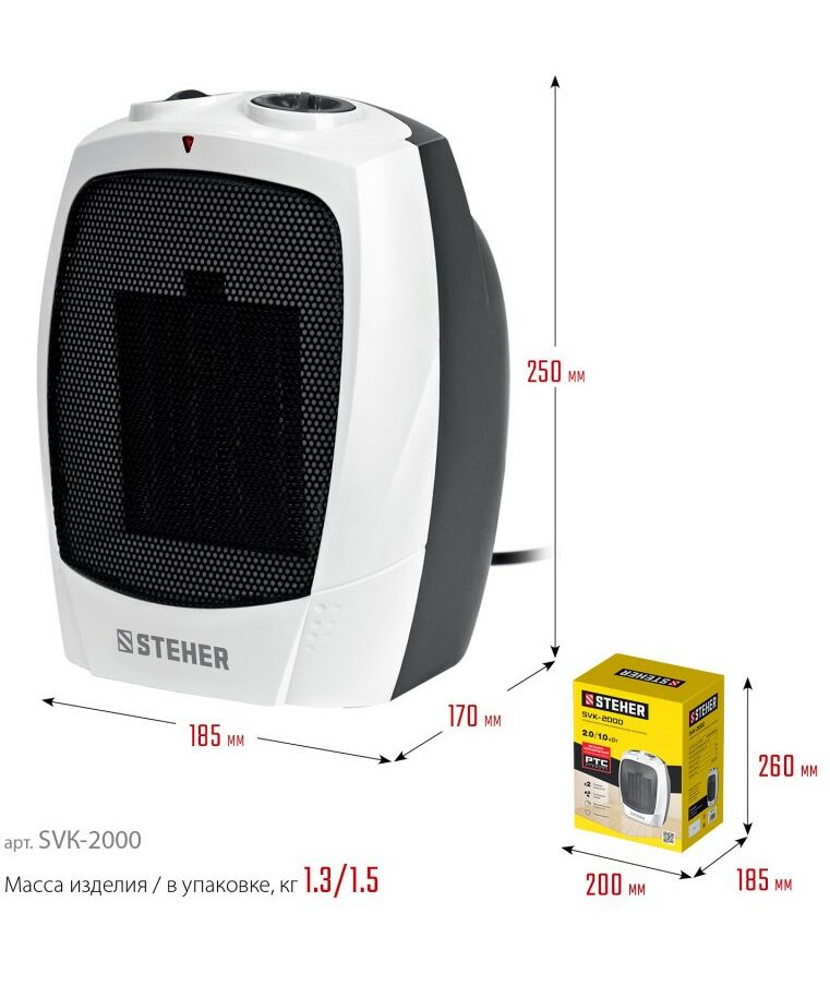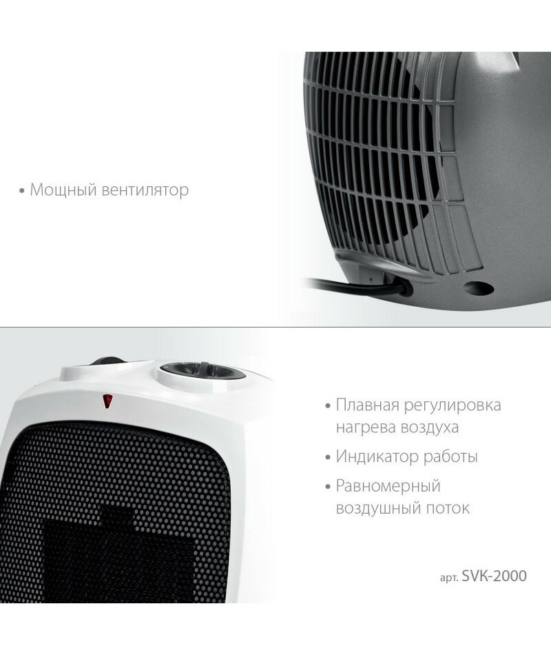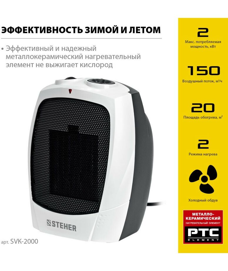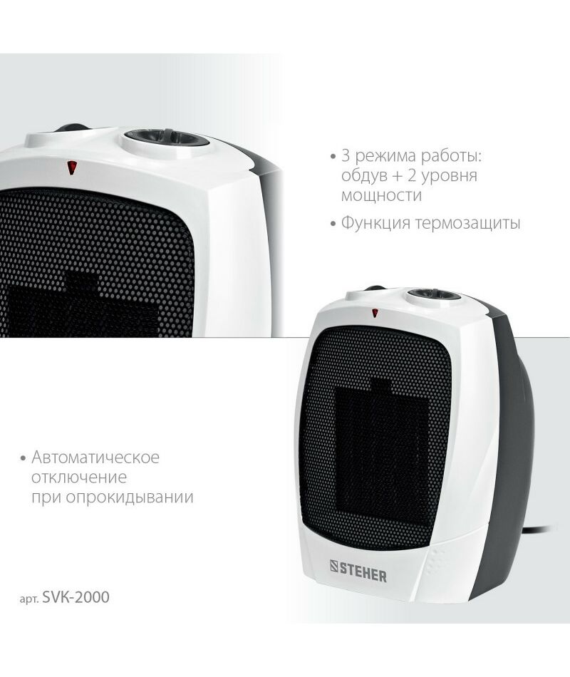 тепловентилятор STEHER SVK-2000 2 кВт, металло-керамический нагревательный элемент