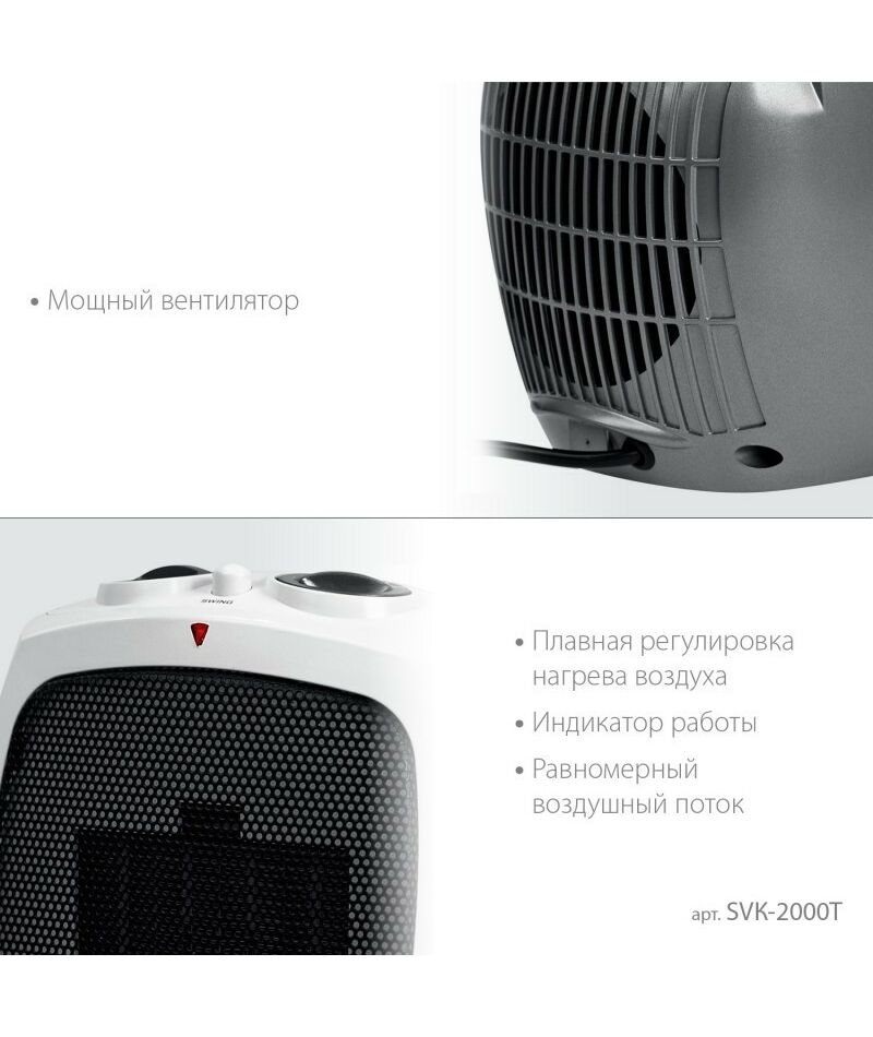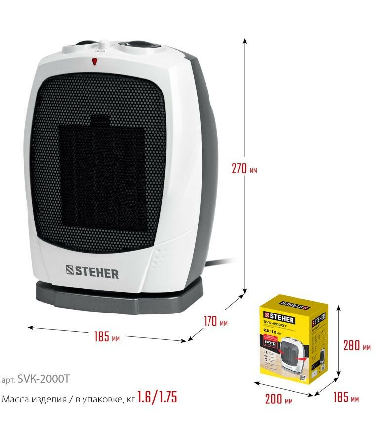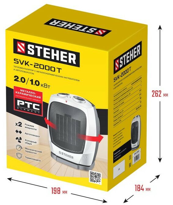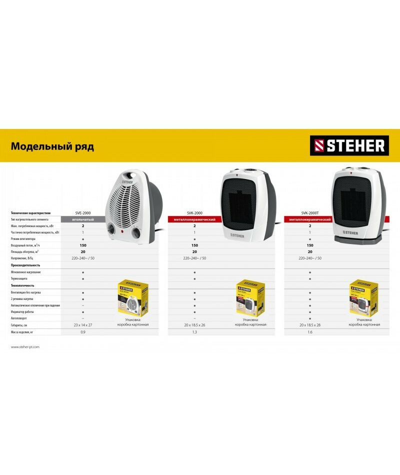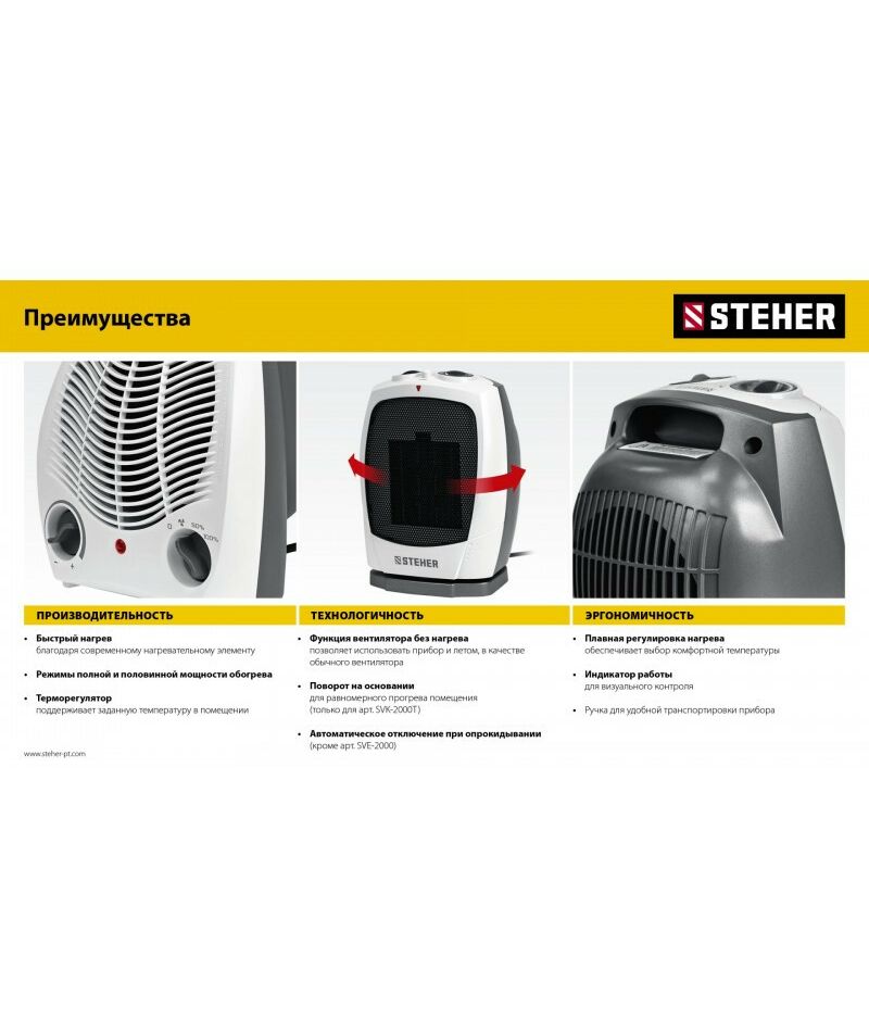 Тепловентилятор STEHER SVK-2000T 2 кВт, металло-керамический нагревательный элемент, автоповорот