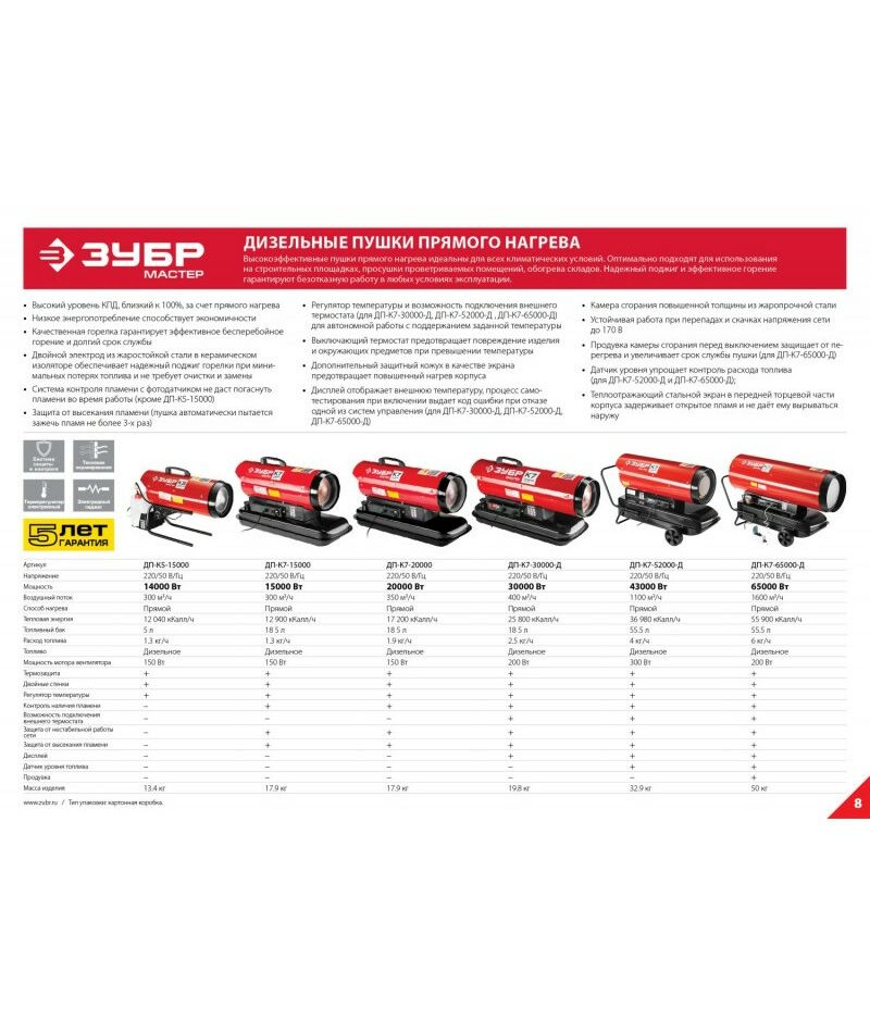 - Высокоэффективный дизельный теплогенератор прямого нагрева работающий на дизельном топливе для всех климатических условий. Оптимально подходит для сушки и прогрева на строительных площадках складских комплексов и проветриваемых помещений. Надежный поджиг и эффективное горение гарантируют безотказную подачу тепла в любых условиях эксплуатации. ЗУБР - тепло всегда и везде