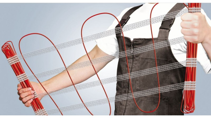 - Маты на эластичной основе, в отличие от матов на сетке, позволяют варьировать форму укладки: от привычной прямоугольной формы до укладки ромбом или трапецией. Таким образом, можно обойти все «препятствия» и установить тёплый пол сложной геометрии. Это весьма удобно для монтажа теплых полов в помещениях с нестандартными размерами, например, в ванных комнатах, прихожих или кухнях с крупногабаритной стационарной техникой