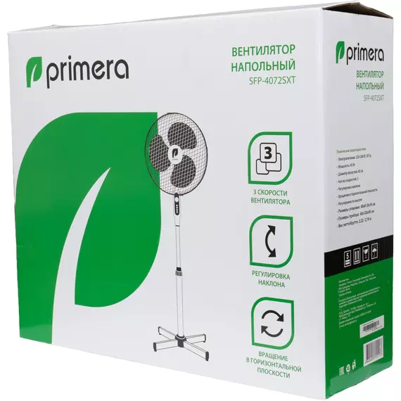 Вентилятор напольный Primera SFP-4072SXT 45Вт скоростей:3 белый/черный