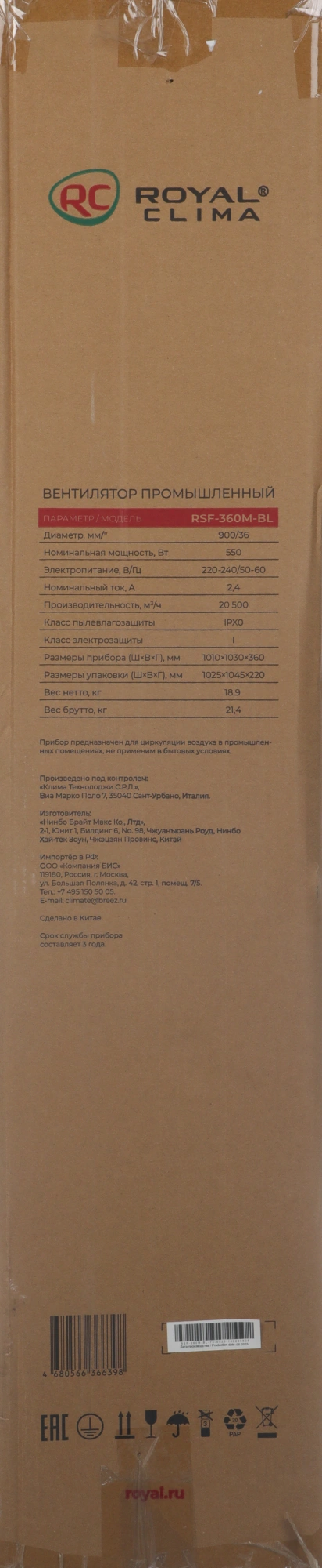 Вентилятор напольный Royal Clima RSF-360M-BL 550Вт скоростей:3 черный
