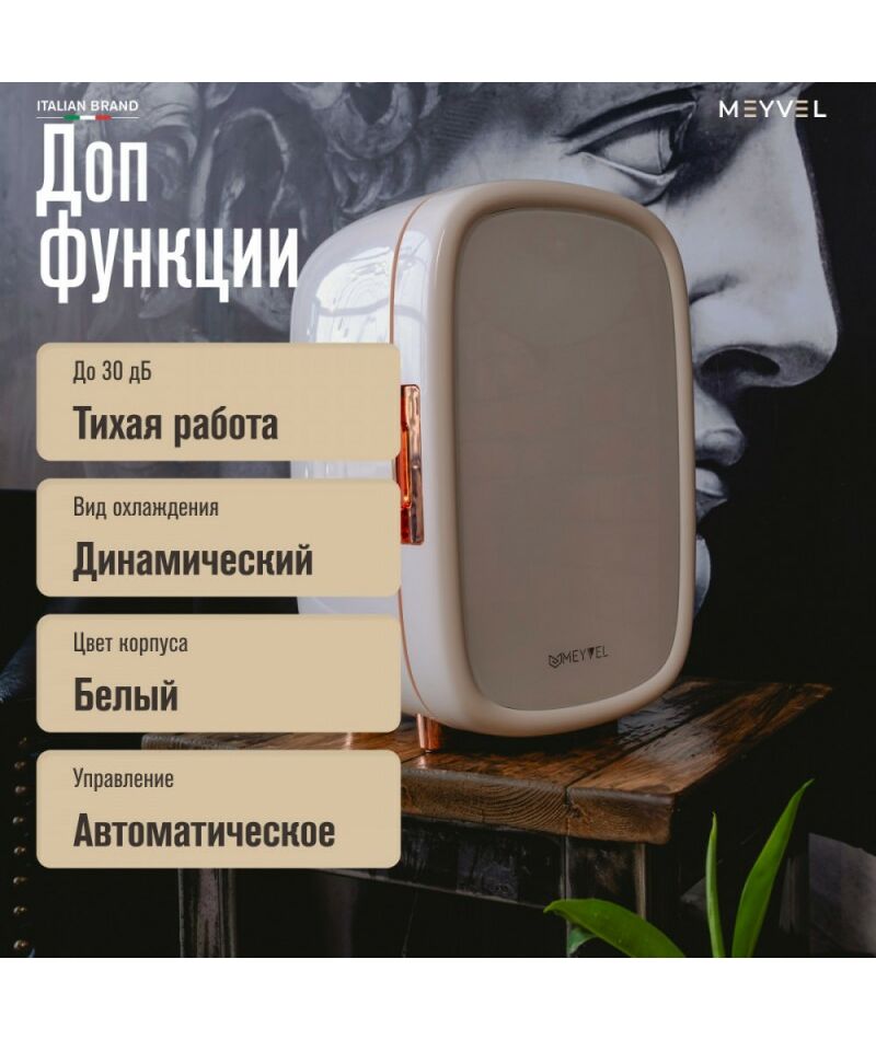 Бьюти-холодильник Meyvel MB-12C1W – это стильное и функциональное решение для хранения косметических и парфюмерных продуктов. Он обладает рядом преимуществ, которые делают его незаменимым помощником в уходе за вашей кожей.