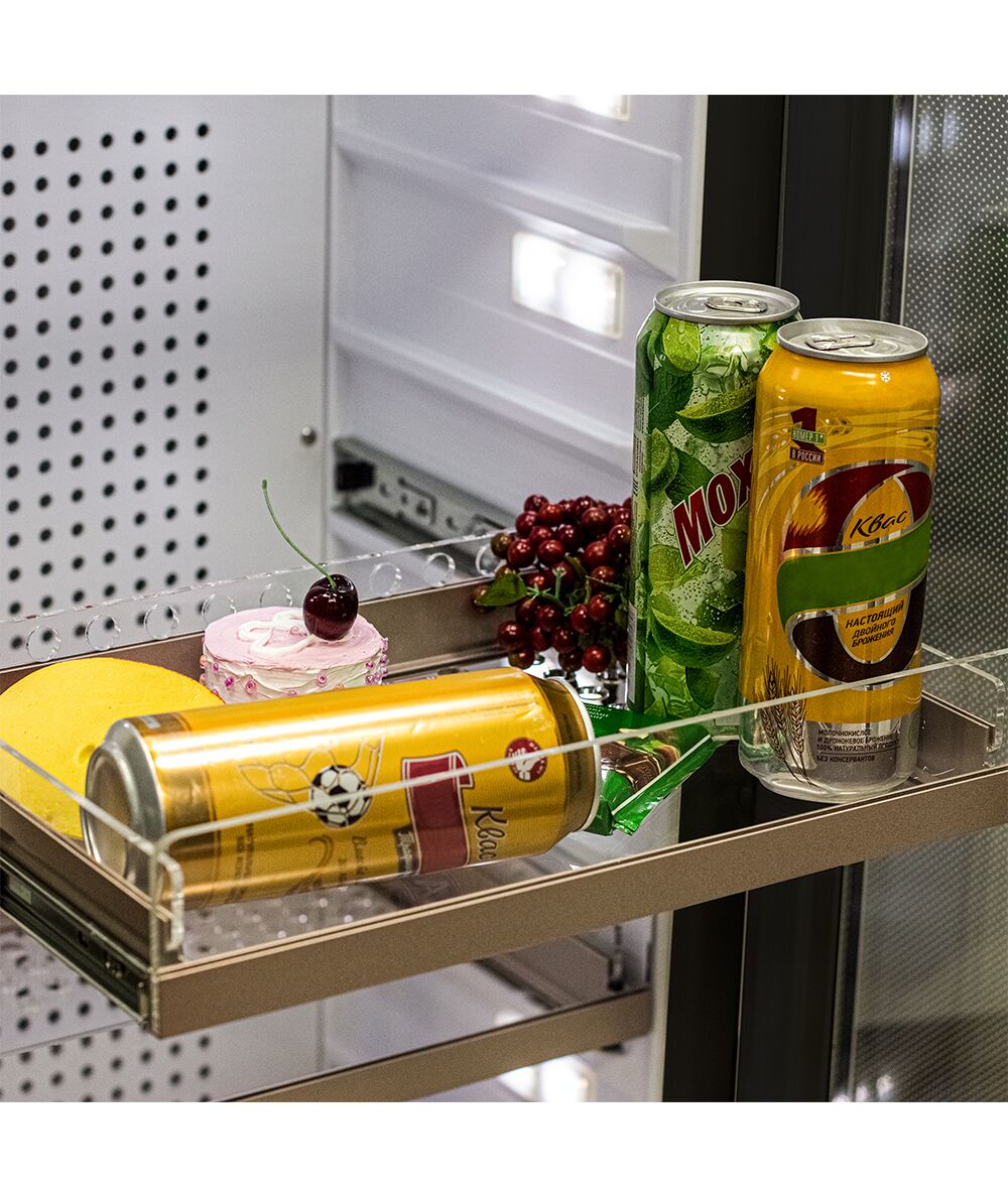 - Так как он имеет стеклянную дверь и панорамное освещение, в нём можно не только хранить, но и демонстрировать товары или продукты и использовать его как холодильник-витрину, что несомненно повысит продажи, при использовании его в коммерческих целях.