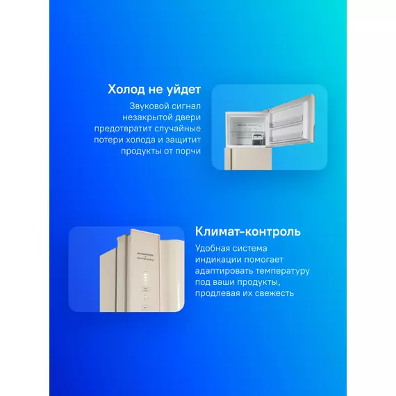 | Индикация | визуальная индикация отключения электропитания, звуковой сигнал незакрытой двери, температуры |