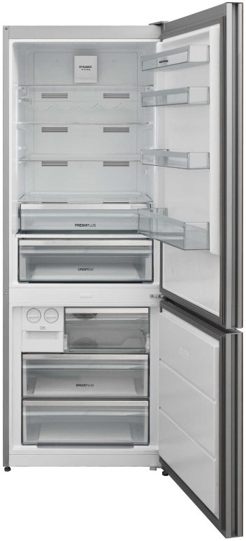 - Дополнительные особенности: Зона сохранения свежести FreshPlus, Большой ящик для овощей, CrispBox с регулировкой влажности, Складывающаяся стеклянная полка, Увеличенный ящик SpacePlus в морозильном отделении, Отсек для приготовления льда Ice Matic