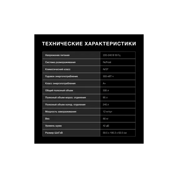 | Полезный объем холодильника | 335 л |