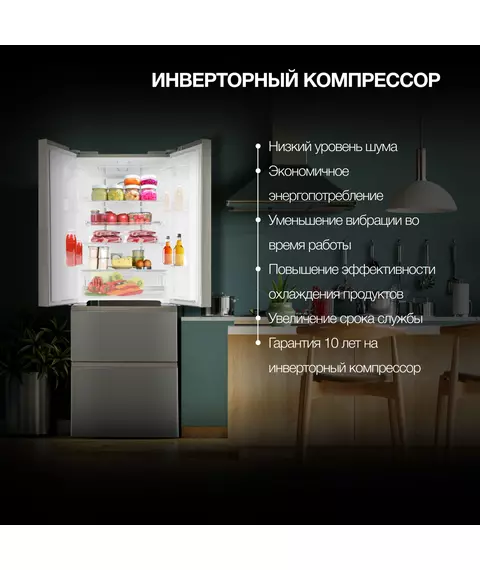 Холодильник Hyundai CM40043F 3-хкамерн. нержавеющая сталь инвертер