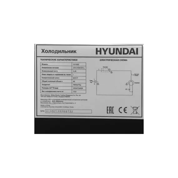 Холодильник Hyundai CO1002 1-нокамерн. серебристый