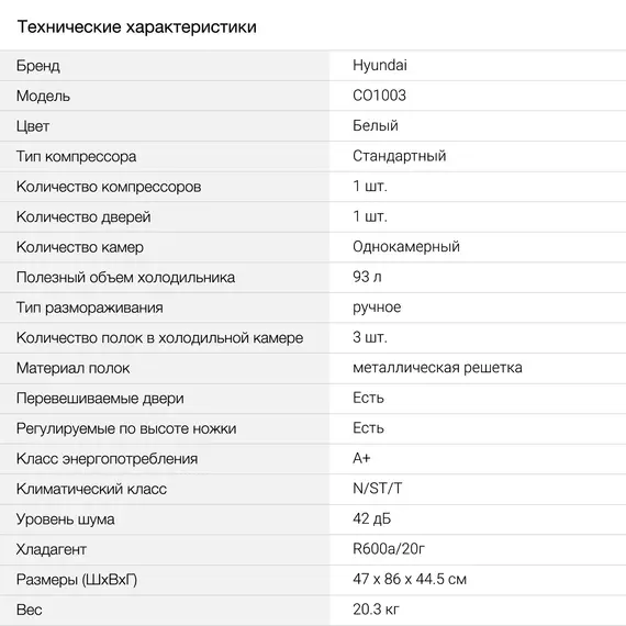 Холодильник Hyundai CO1003 1-нокамерный, белый