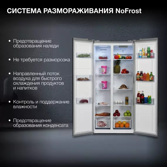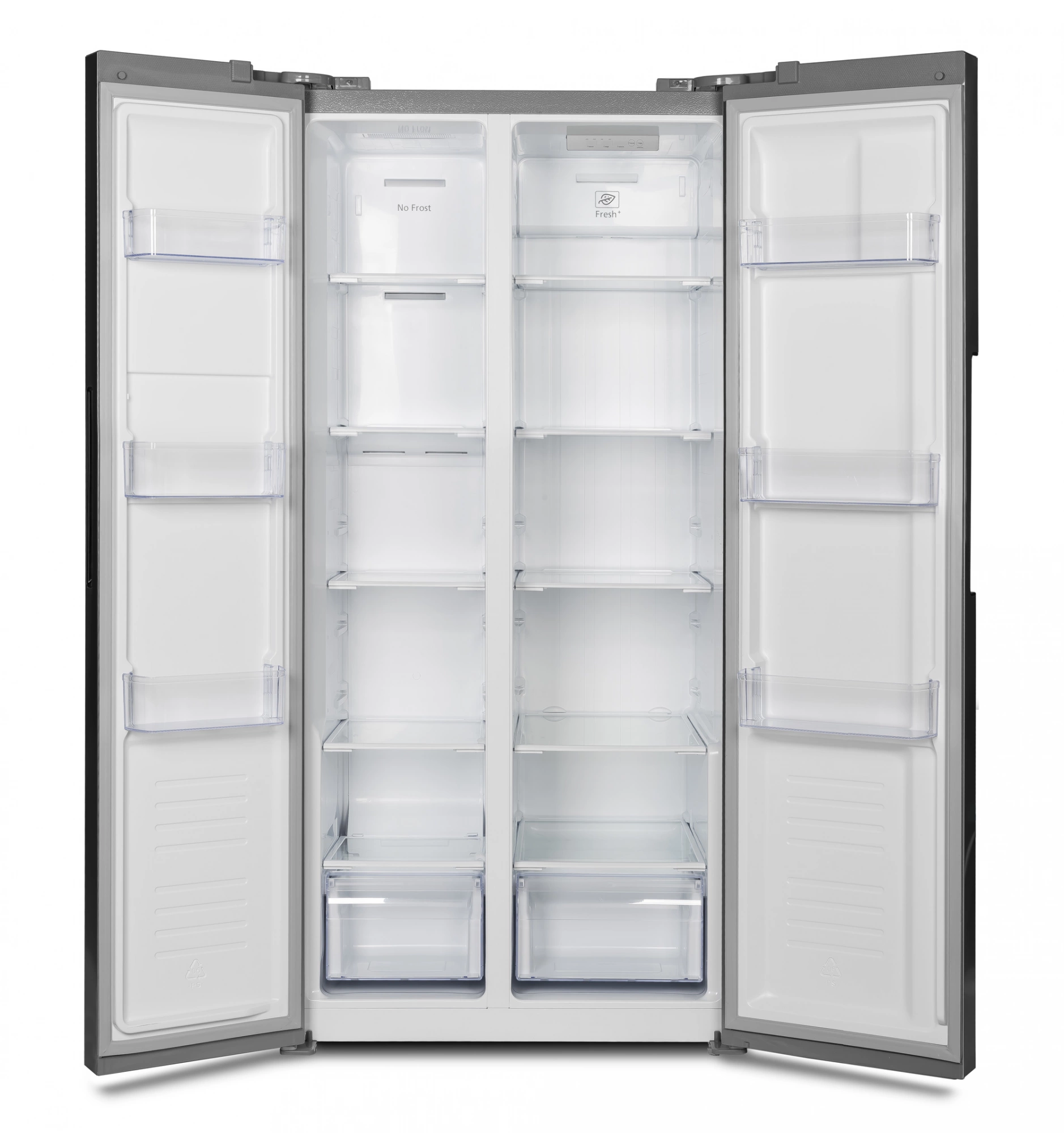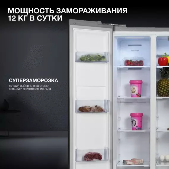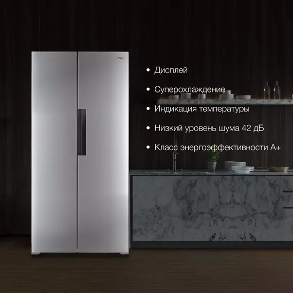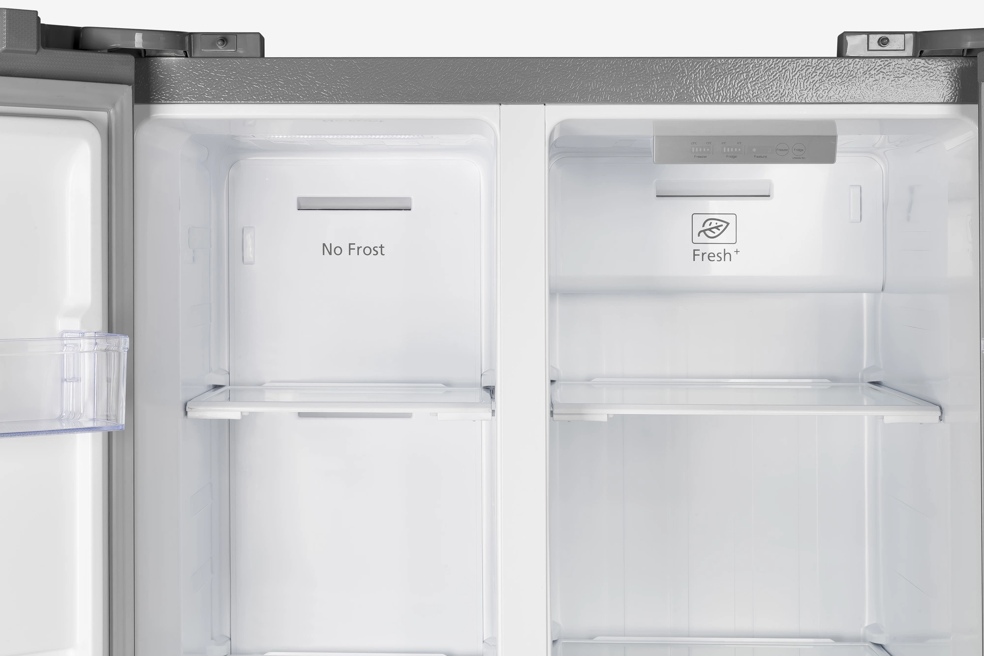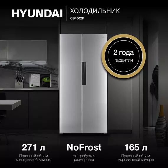 Стильный и вместительный 2-х дверный холодильник HYUNDAI CS4502F (тип Side by Side) привлекает и своим современным дизайном, и продуманным функционалом.