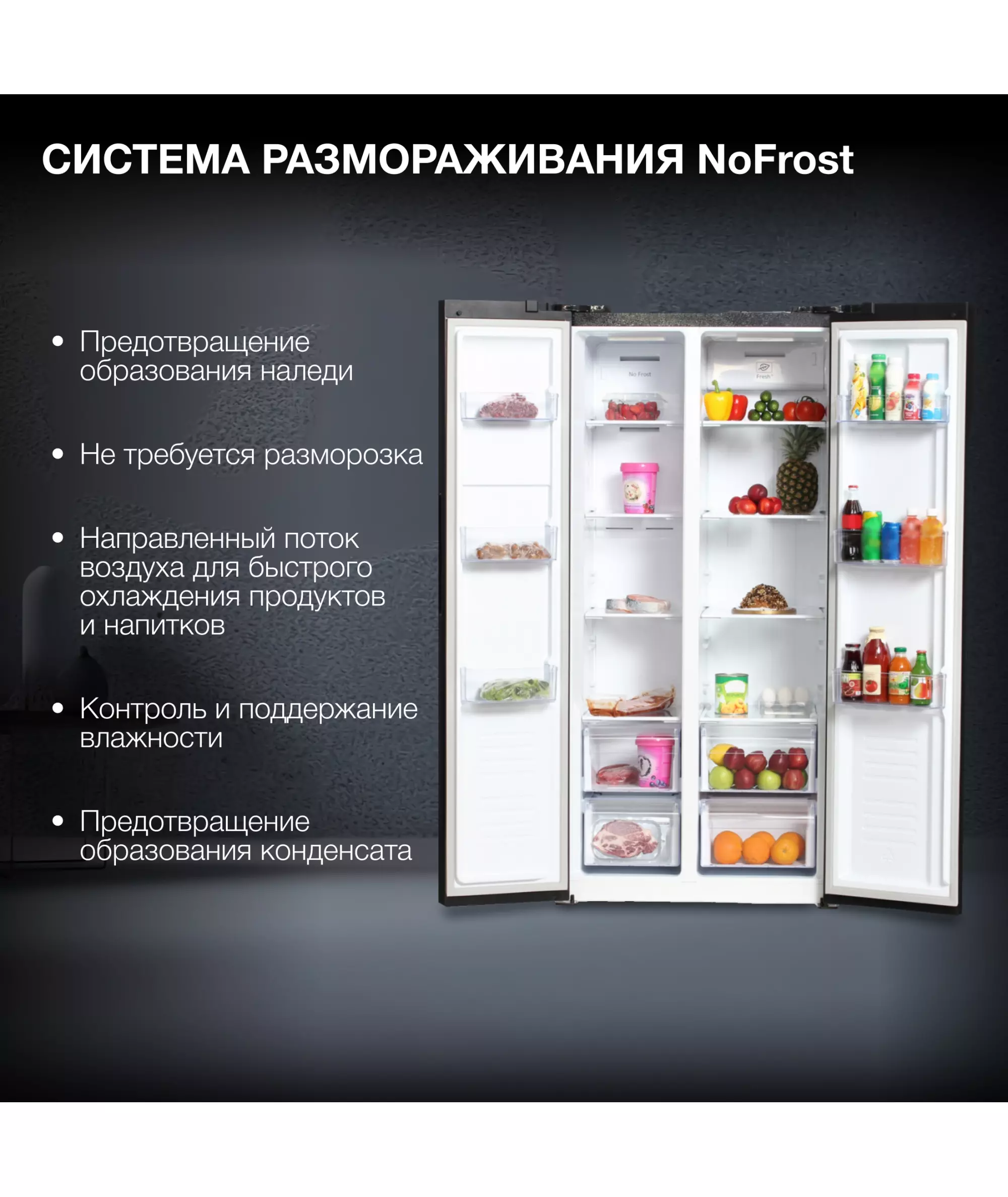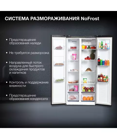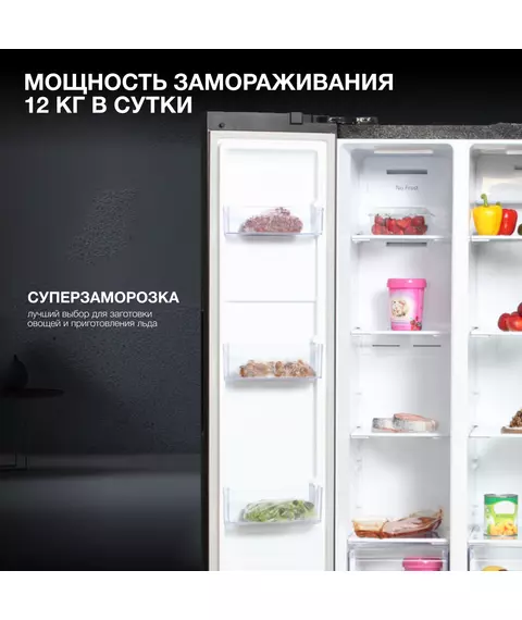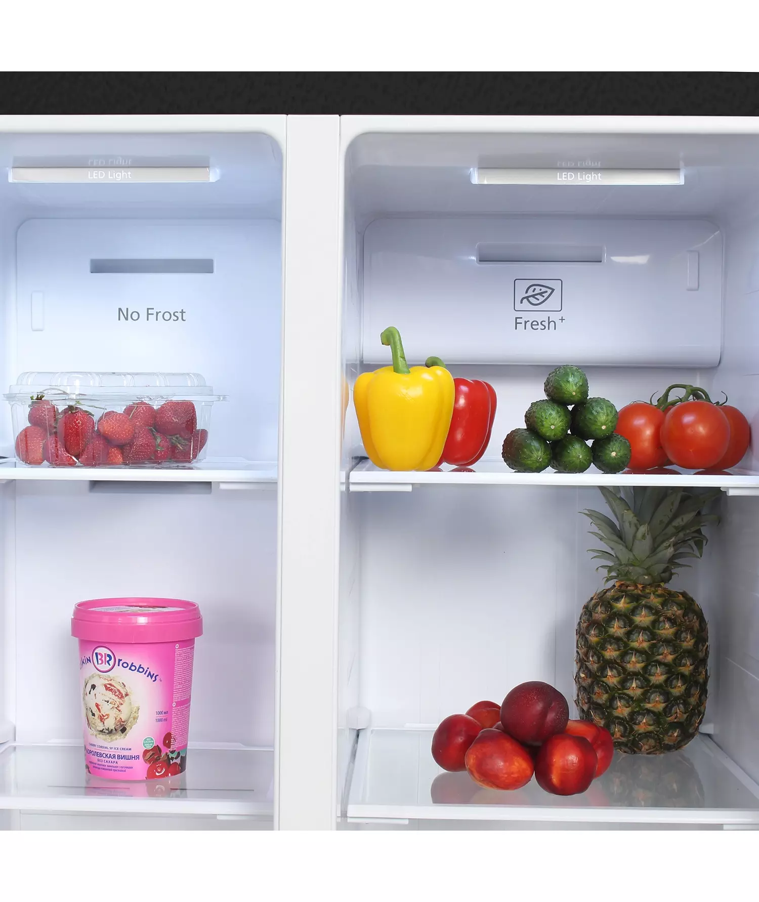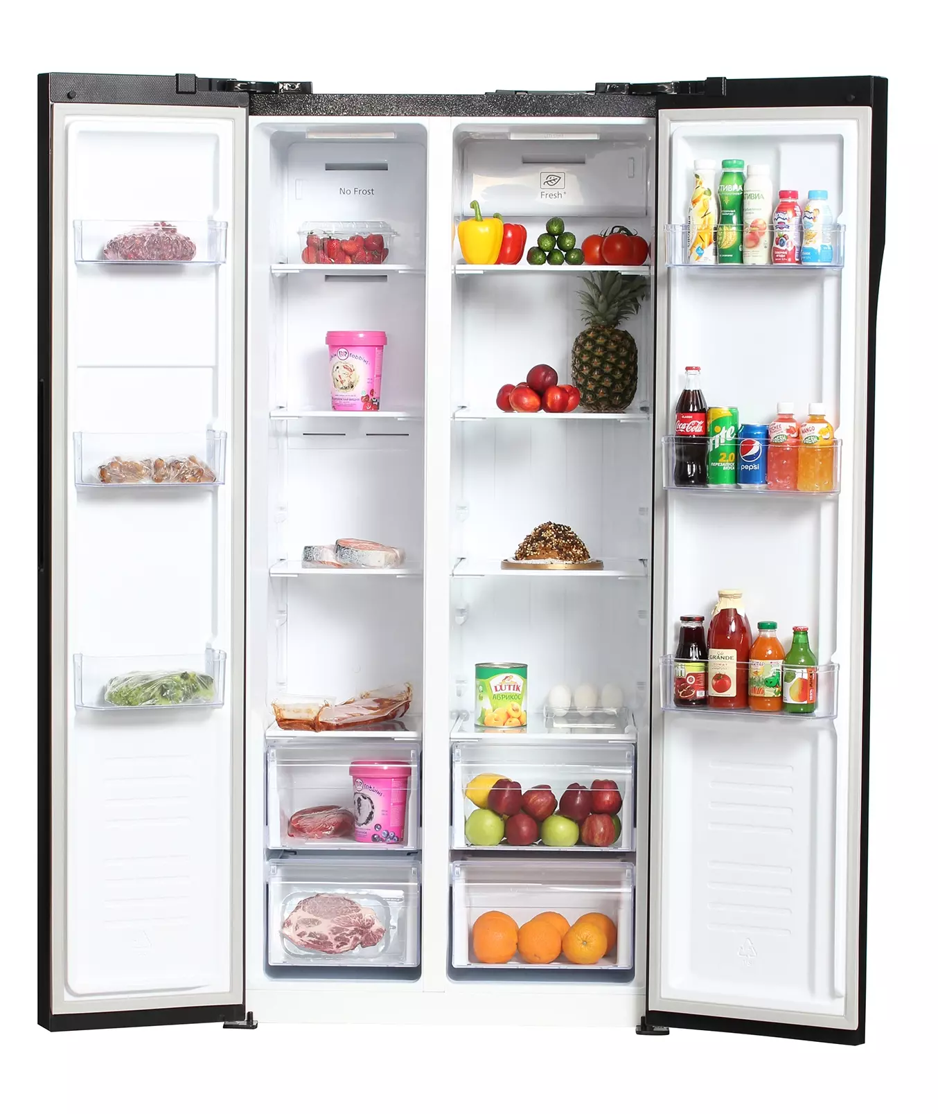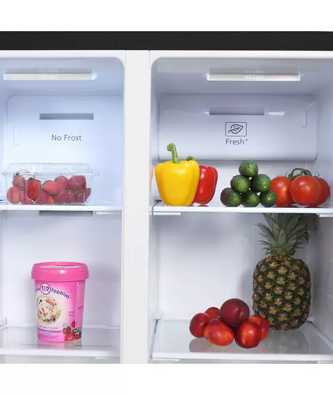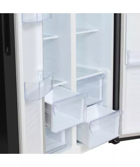Тем, кто при выборе холодильника обращает внимание на модели с большим объемом, оптимально подойдет 2-х камерный холодильник HYUNDAI CS4505F (тип Side by Side) выполненными из нержавеющей стали в стильном черном исполнении.