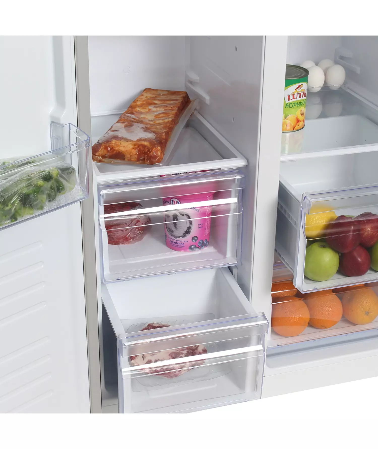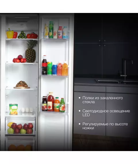 В дверях холодильной и морозильной камер предусмотрены дополнительные полки для хранения напитков, детского питания и продуктов.