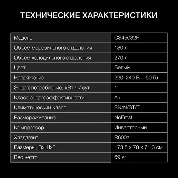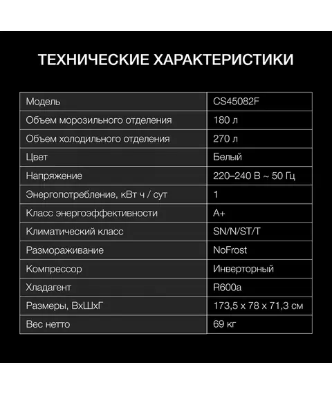 Холодильник Hyundai CS45082F 2-хкамерн. белый