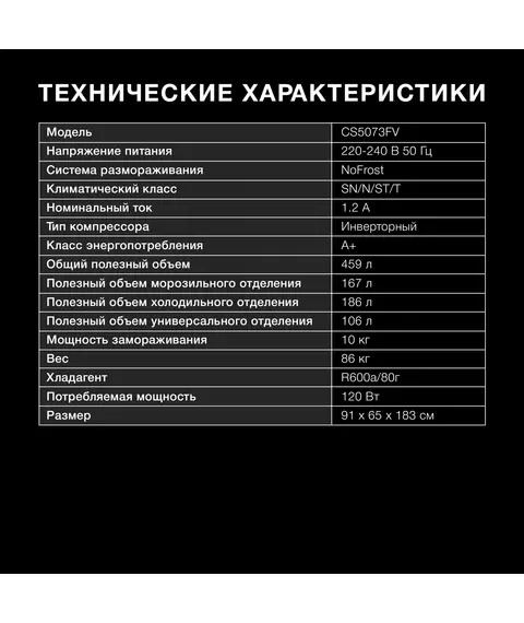| Инверторный компрессор | Да |