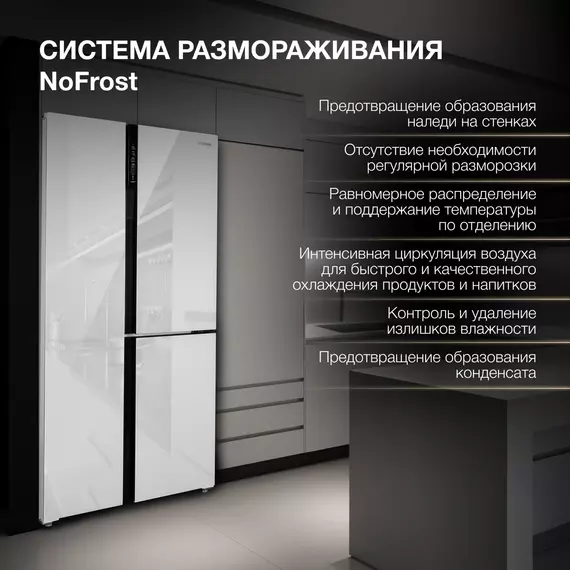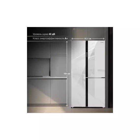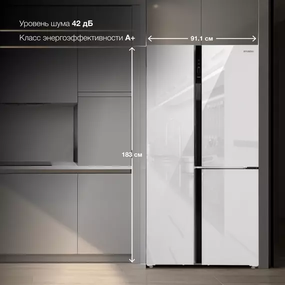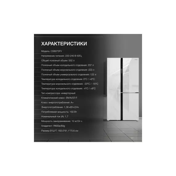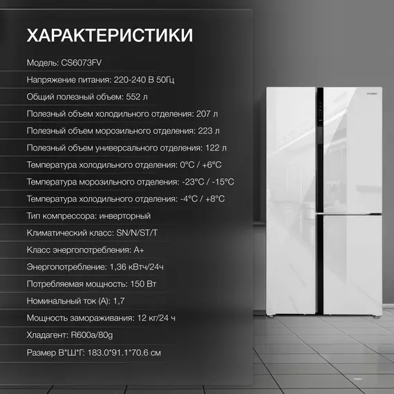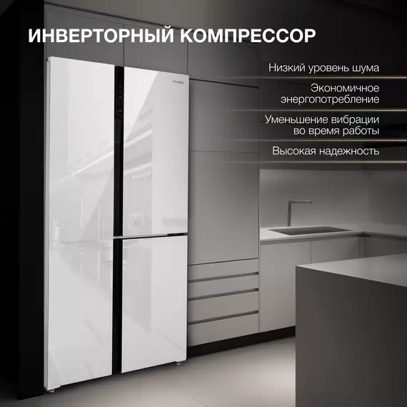 Холодильник Hyundai CS6073FV 3-хкамерн. белое стекло инвертер