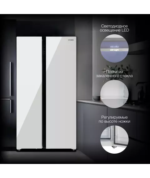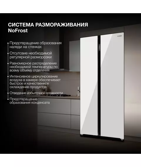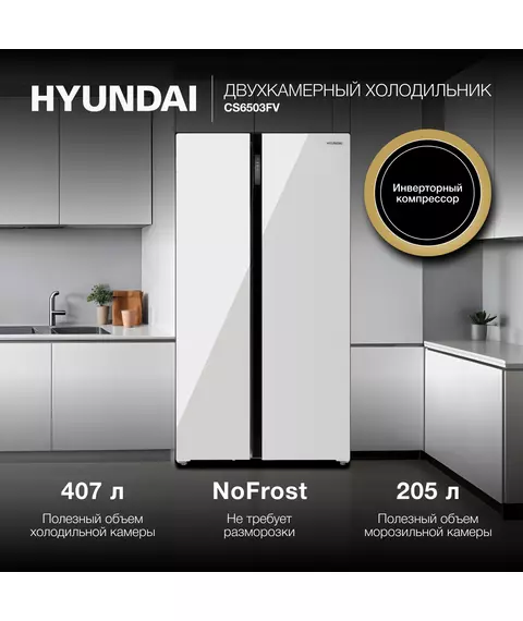 Холодильник Hyundai CS6503FV 2-х камерный, белое стекло, инвертер