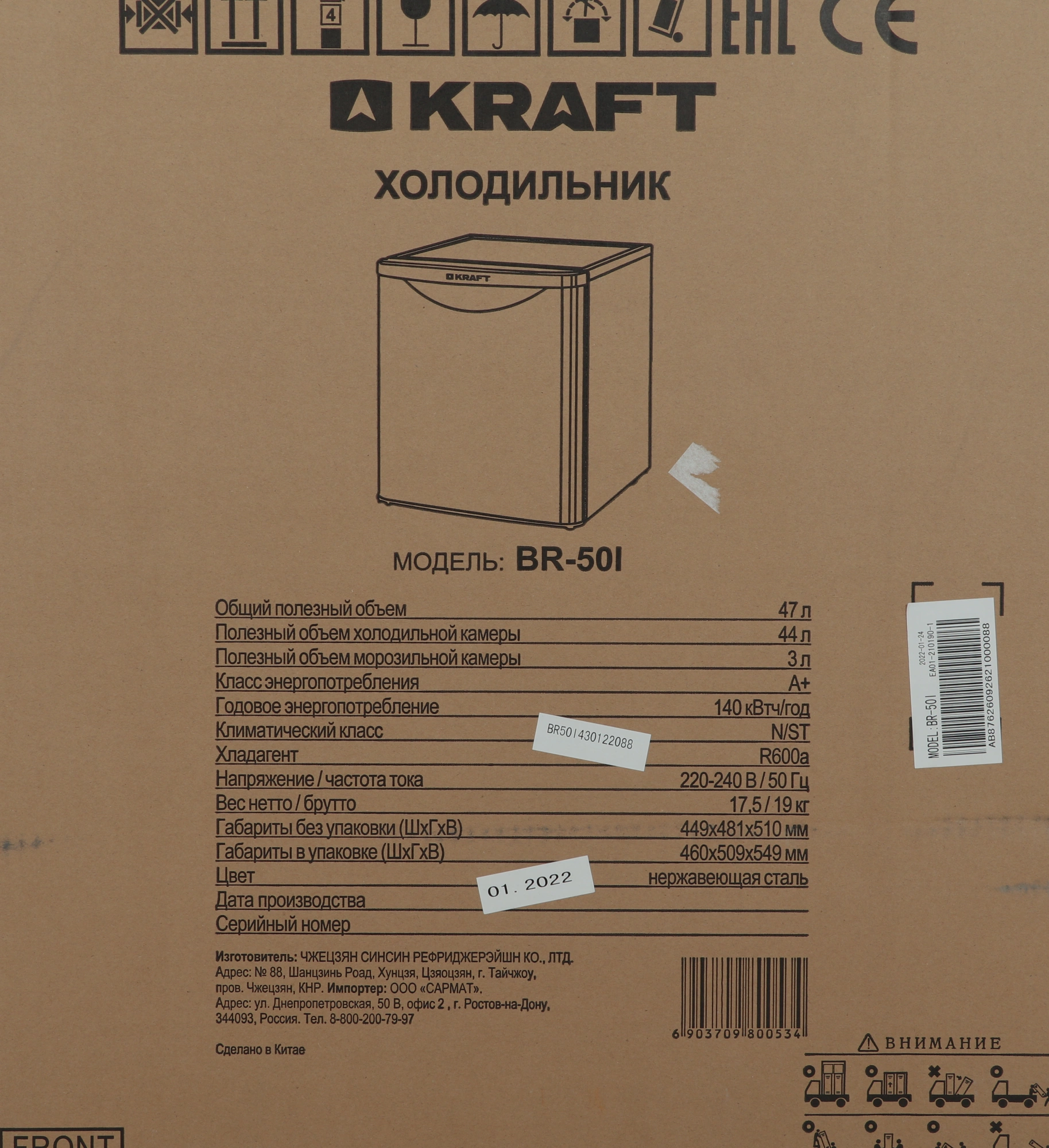 Холодильник Kraft BR 50I 1-нокамерный, серебристый мат