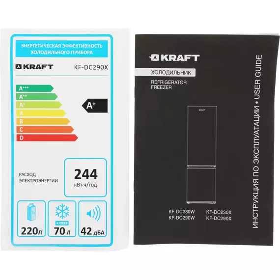 Холодильник Kraft KF-DC290X 2-хкамерный, серебристый металлик текстура