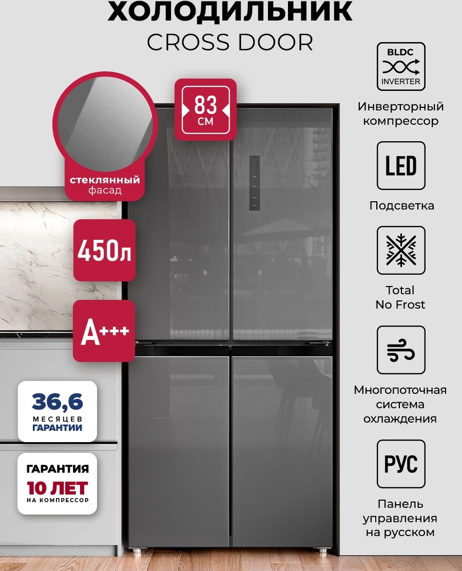 Холодильник LEX LCD450SSGID 3-хкамерн. серый инвертер [CHHE000004]