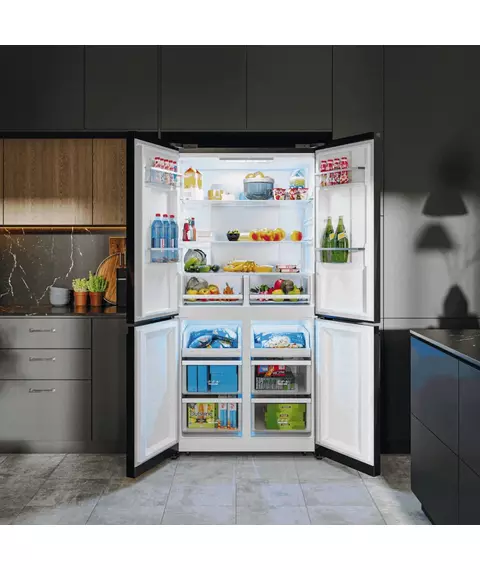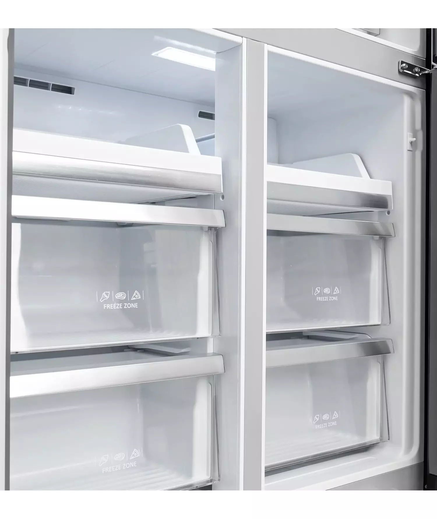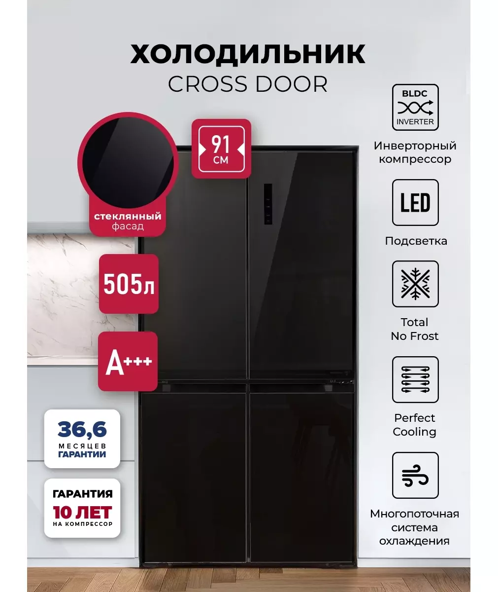 | Особенности | Модель типа CROSS DOOR имеет верхнее холодильное и два независимых нижних морозильных отделения. |