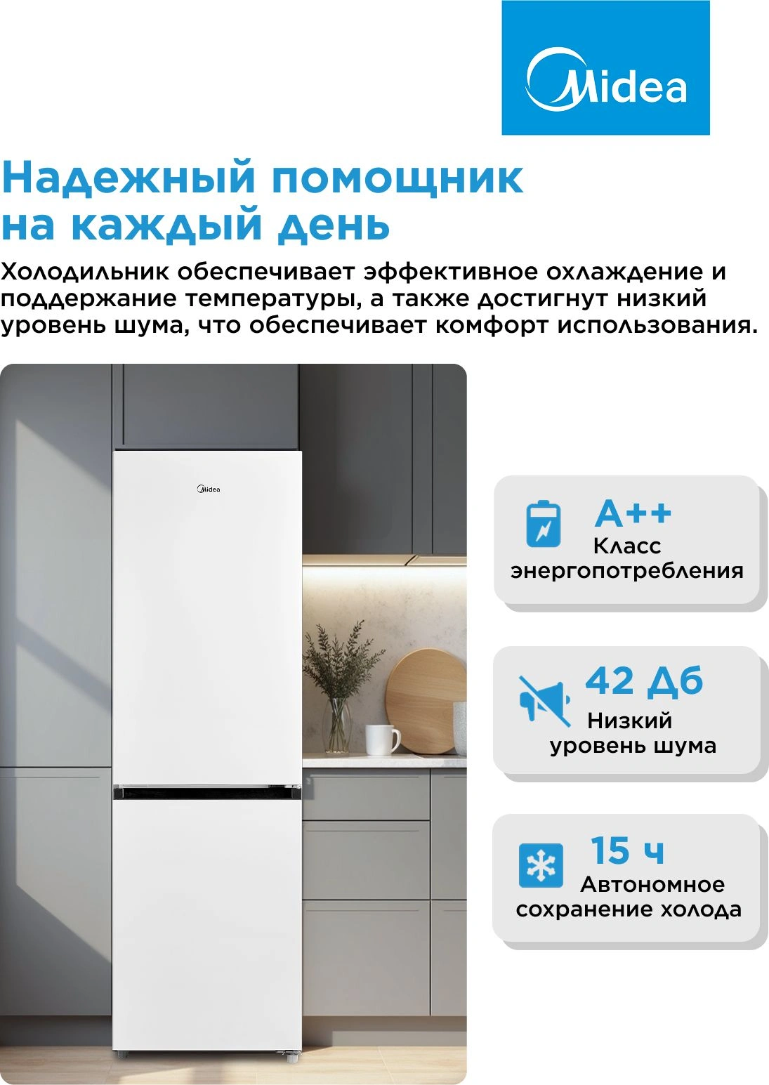 Холодильник Midea MDRB469MGF01I 2-хкамерный, белый, матовый