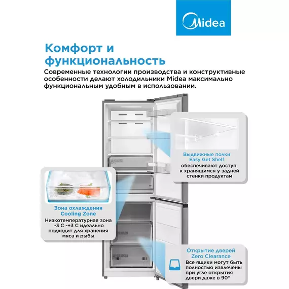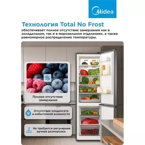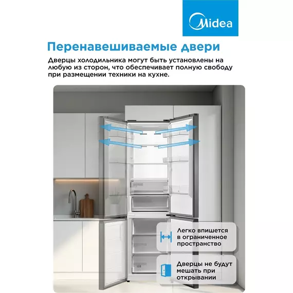 Холодильник Midea MDRB469MGF46I 2-хкамерный, нержавеющая сталь, матовый