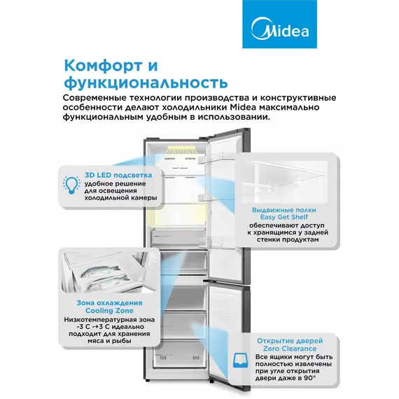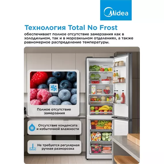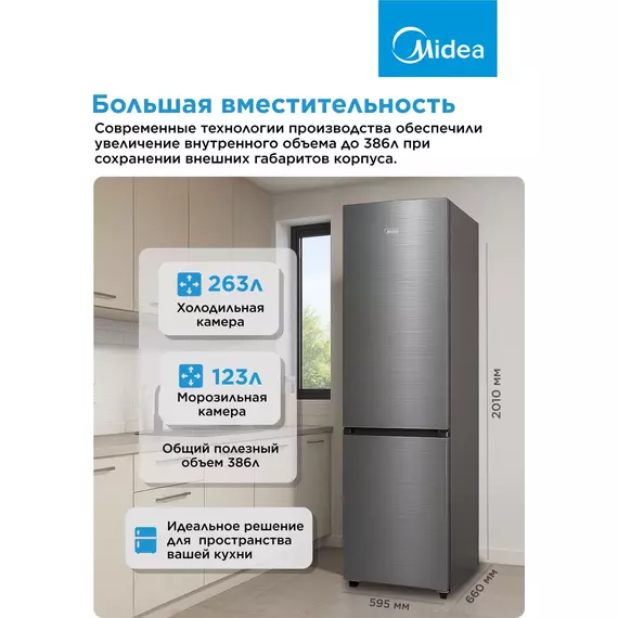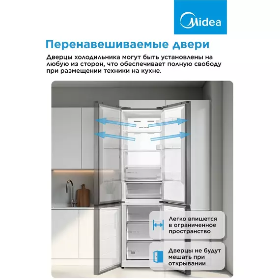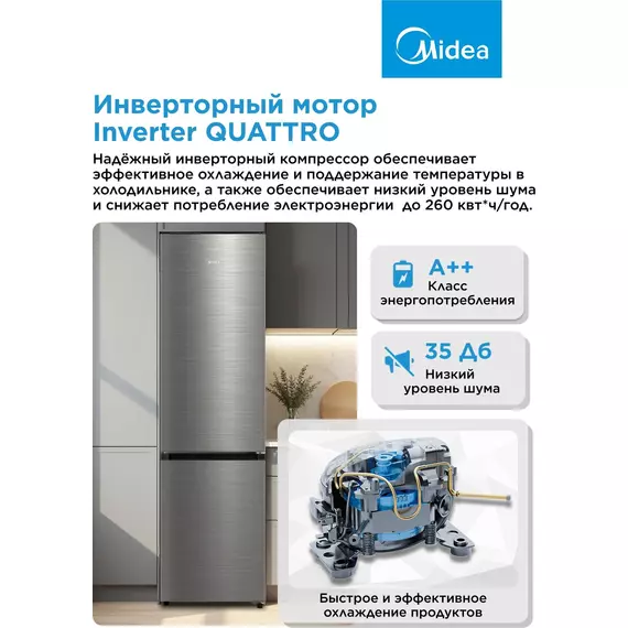 Холодильник Midea MDRB519MGE46ID 2-хкамерный, нержавеющая сталь мат, инвертер