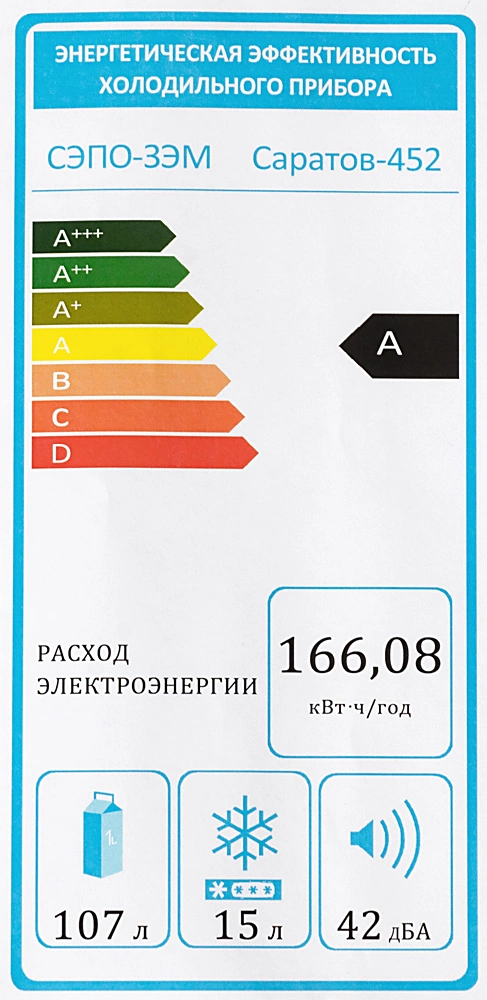 | Потребление энергии | 166 кВт*ч/год |