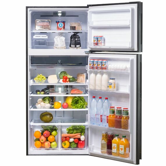 Модельный ряд 2018 года. Серия Grand Top. Холодильник-морозильник объединяет в себе все последние разработки корпорации SHARP: уникальный инверторный компрессор JTECH invert; система охлаждения Extra Cool, благодаря которой можно охладить напитки и еду до температуры, максимально близкой к уровню замерзания, но не замораживать их; функция заморозки Express Freezing, позволяющая приготовить лёд всего лишь за 93 минуты. Уникальная технология ионизации и очистки воздуха Plasmacluster с помощью отрицательно и положительно заряженных ионов деактивирует бактерии и споры грибков плесени в воздухе внутри холодильника, предотвращая их воздействие на продукты и, тем самым, продлевая свежесть продуктов. Модель оснащена уникальной системой охлаждения Hybrid Cooling , которая обеспечивает быстрое и равномерное охлаждение воздуха в холодильной камере, предотвращая заветривание продуктов. Cистема охлаждения Full No Frost не даст образоваться наледи на стенках морозильной камеры и освободит пользователя от необходимости размораживания холодильника. Яркие светодиоды LED равномерно и ярко освещают всё внутреннее пространство холодильника. Внушительные полезные объемы холодильной камеры (394л) и морозильника (162л). Встроенная защита от перепадов напряжения. Класс энергоэффективности А++.