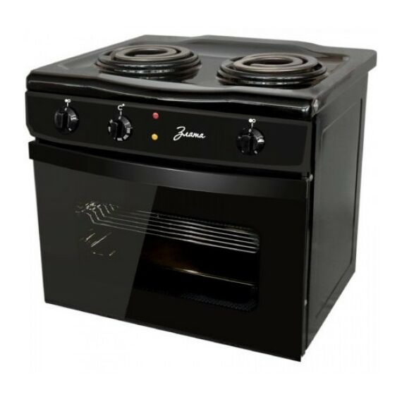 Кухонная плита с двумя электрическими конфорками. Объем духового шкафа составляет 25 литров.