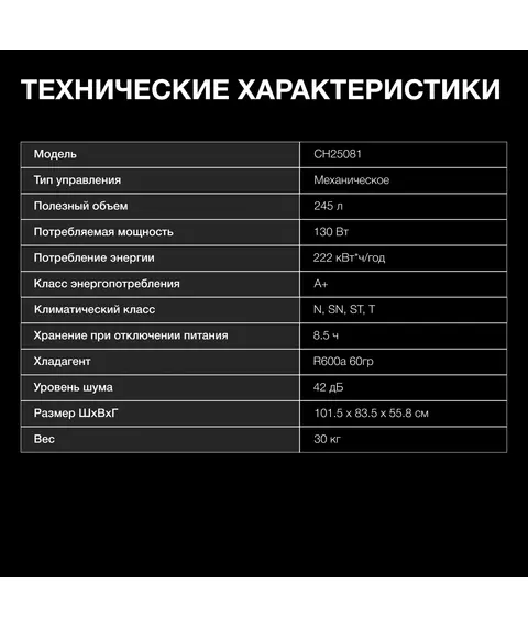 Морозильный ларь Hyundai CH25081 белый 130Вт